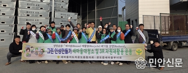 공도읍 새마을지도자회·부녀회(회장 이호일, 김영순)가 지난 20일 서안성농협 라이스센터에서 회원 40여 명이 참석한 가운데 아름답고 안전한 공도 만들기를 위한 ‘자원재활용 운동’ 및 ‘안전캠페인’ 행사를 동시에 실시했다.