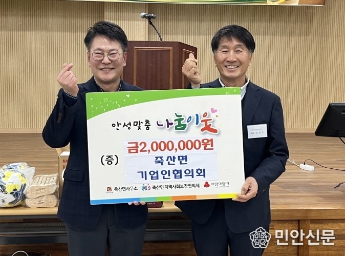 죽산면 기업인협의회(회장 김명수)가 지난 21일 오후 6시 동안성 시민복지센터 내 사무실에서 죽산기업인협의회 송년회를 개최하고 이웃돕기 성금 200만원을 기탁했다.