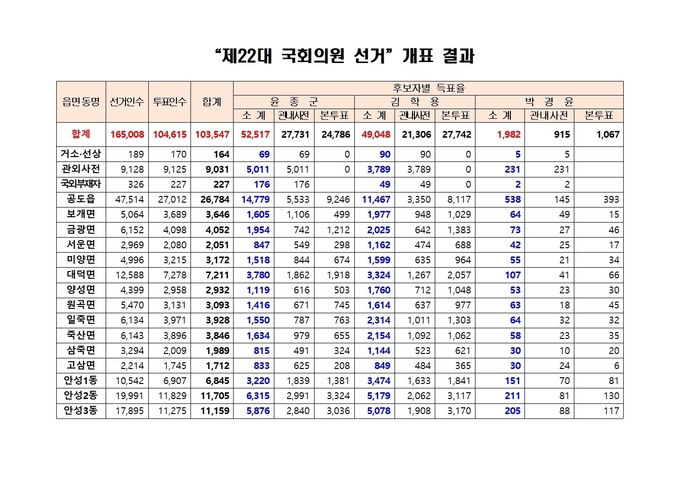제22대 국회의원 선거 개표결과