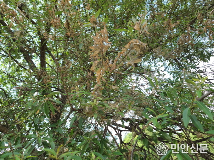 겨울철 고온과 여름철 폭염 등 이상기후로 인해 미국흰불나방의 개체수가 늘고 성장 속도가 빨라서 관내 피해가 확산하고 있다.