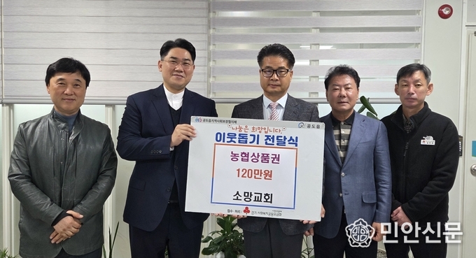 공도 진사리 소재 소망교회(담임목사 배성윤)가 지난 14일 공도읍행정복지센터에 방문, 지역 어려운 이웃을 돕기 위한 농협 상품권 120만 원(5만 원권 24매)을 기탁했다.