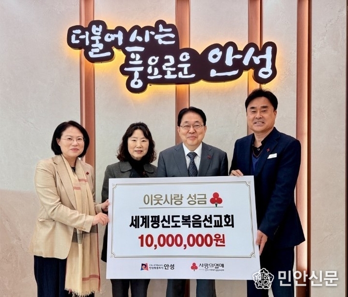 안성시가 지난 10일 세계평신도복음선교회로부터 현금 1천만원을 지정기부금으로 전달받았다고 밝혔다.