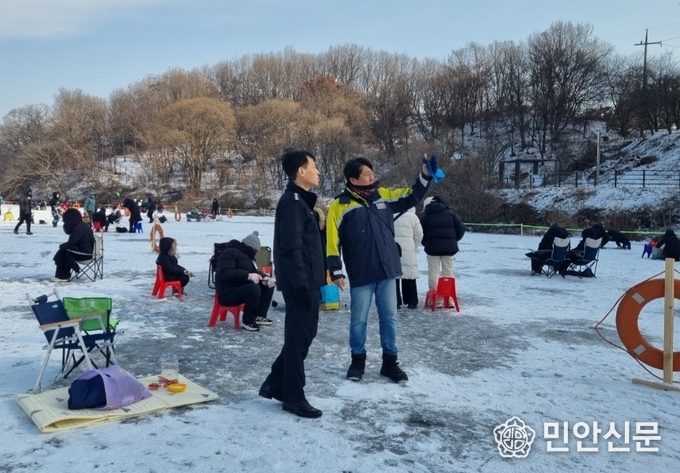 이번 현장 방문은 빙어낚시 체험과 각종 부대행사로 많은 방문객이 몰림에 따라 발생할 수 있는 안전사고에 대비하기 위해 마련됐다.
