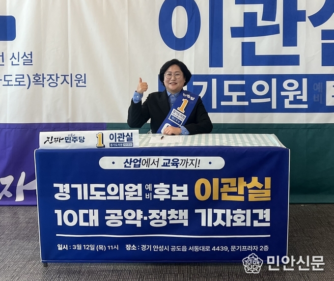이관실 더불어민주당 경기도의원 제1선거구 예비후보는 12일 안성 미래를 바꾸기 위한 안성발전 10대 공약을 발표했다.