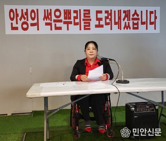 “당 공심위가 안성 다선거구 시의원 선거에 3명이 신청했는데 경선 없이 2명을 확정하고 본인만 컷오프 시켰다”고 언급 성토한 뒤 “안성 정치를 잡아 삼킨 비리와 불공정 장막을 걷어내기 위해 오늘 본인은 중대한 결단을 내렸다”고 밝혔다.