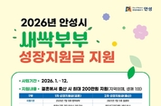 안성시가 3월 13일 ‘안성시 출산·양육 지원 조례’ 일부개정을 통해 새싹부부성장지원금 연령 기준(49세이하 신혼부부)을 폐지하여 지원 대상을 확대했다. 이 사업은 신혼부부의 안정적인 생활 기반 마련과 출산 장려를 목적으로 작년 7월 1일부터 시행한 결과 단기간에 예산이 소진될 만큼 많은 관심을 받았으나 49세 이하로 연령 제한 기준이 있어 다양한 가족 형성 시기를 포용하지 못하는 아쉬움이 있었다. 이에 안성시는 이러한 한계를 보완하고자 연령 기준을 전면 폐지하였으며 더 많은 시민이 혜택을 누릴 수 있도록 지원 범위를 확대했다. 지원금은 1차 성장지원금(결혼)과 2차 성장지원금(출산)으로 구성되어 단계적으로 지급되는데 1차 성장지원금은 2025년 7월 이후 혼인신고를 완료한 부부가 6개월 이내에 신청할 경우, 100만원의 지역화폐가 지급된다. 다만, 부부 중 한 명이 안성시 외 지역에 주소를 두고 있는 경우 혼인신고 후 30일 이내 전입신고를 완료하면 신청할 수 있고, 49세 이상인 경우 올 1월 1일 이후 혼인신고한 부부부터 지원 가능하다. 2차 성장지원금은 1차 지원금을 받은 신혼부부가 10년 이내 안성시에서 첫째 자녀를 출생신고 하고, 자녀가 만 1세가