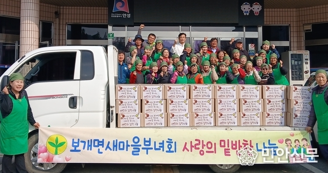 보개면 새마을부녀회가 13일 지역 나눔 문화 확산을 위해 ‘사랑의 김장 나눔 행사’를 열었다. 부녀회원들은 이틀간 정성을 모아 김장 400포기를 손수 담갔으며, 이를 마을별 홀몸 어르신 가구에 직접 전달해 따뜻한 겨울나기를 도왔다.