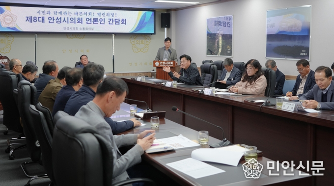 안성시의회(의장 안정열)가 지난 14일 시의회 소통회의실에서 언론인들과 간담회를 열고 LNG 열병합발전소 건립 및 송전선로 설치, 지역 개발 현안 등 주요 이슈를 논의했다.