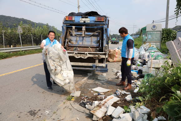 현장에 먼저 도착해있던 이영찬 산업건설위원장은 미화원이 도착하자 두 팔을 걷어붙이고 모두가 지저분하고, 악취난다고 외면하는 쓰레기 수거 작업에 동참, 구슬땀을 흘렸다.