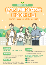 ‘안성시 대학(원)생 학자금 대출이자 지원’ 11월 7일까지 접수
