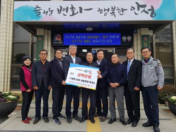 경부고속도로 서울방향 안성휴게소(소장 박우필)는 지난 28일 안성시 원곡면 지역사회보장협의체(공동위원장 이달휘, 유승덕)에 나눔 이웃 후원금 300만원을 기탁했다.
