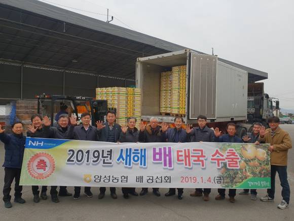양성농협은 새해 4일 양성농협 선과장에서 유건섭 조합장과 임원, 양성농협 배 공선회(회장 김윤배)임원진, 농협안성시지부 김상수 지부장 등이 참석한 가운데 배 수출 선적식을 가졌다.
