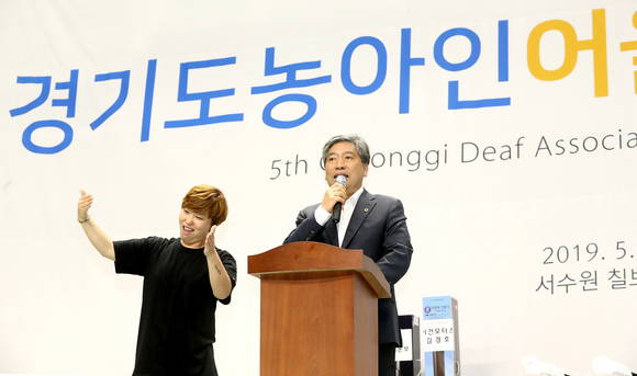 이날 서수원칠보체육관에서 열린 행사에는 송한준 의장을 비롯해 신동진 경기도농아인 협회장, 김황률 경기도농아노인회장, 도내 거주 청각·언어장애인 및 자원봉사자 등 1천500여 명이 참석했다.