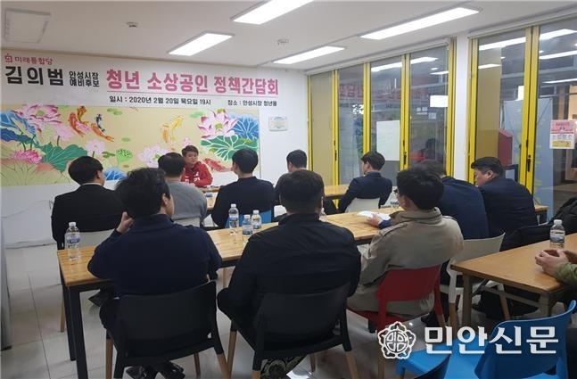 미래통합당 김의범 안성시장 예비후보가 20일 안성전통시장 청년몰 독서실에서 ‘청년 소상공인 정책간담회’를 통하여 청년 사업가들이 격고 있는 어려움을 현장에서 듣고 함께 고민하며 대책을 마련했다.