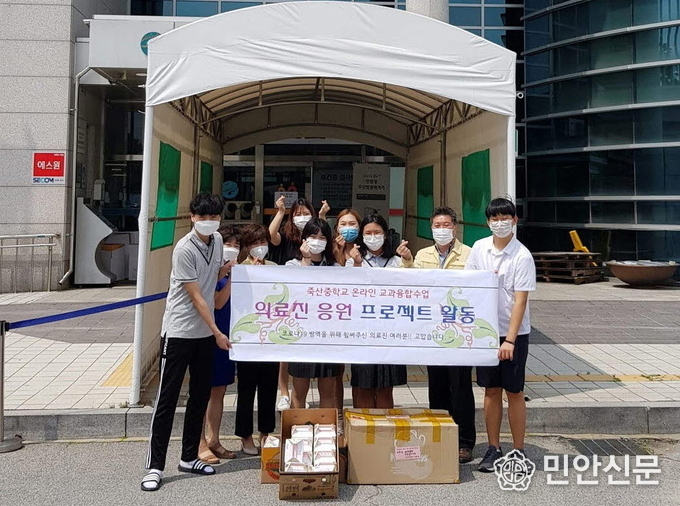 죽산중학교 학생들이 코로나19 극복을 위해 힘쓰고 있는 의료진과 공무원을 응원하는 ‘덕분에 챌린지’에 참여해 큰 호평을 받고 있다.