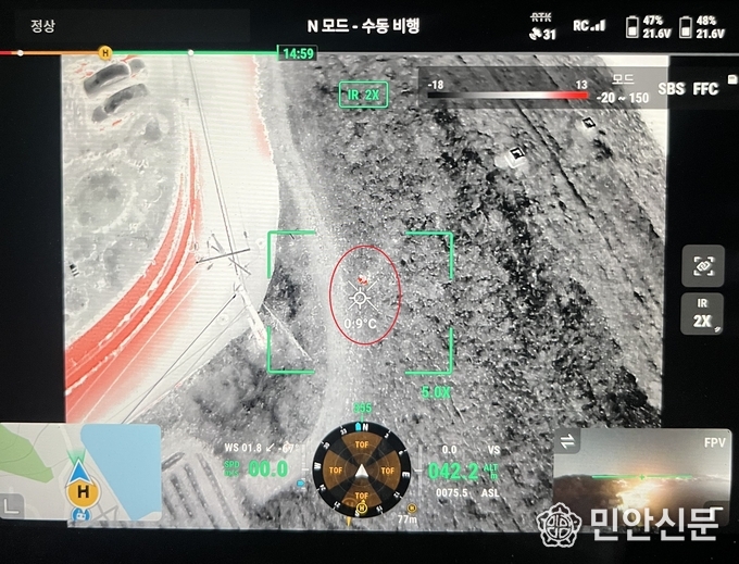 특히 접근이 어려운 야산과 농경지 일대를 소방드론으로 집중 탐색한 결과, 수색 시작 21분 만에 신고지로부터 500m 떨어진 저수지 인접 산책로에서 실종자를 발견했다.