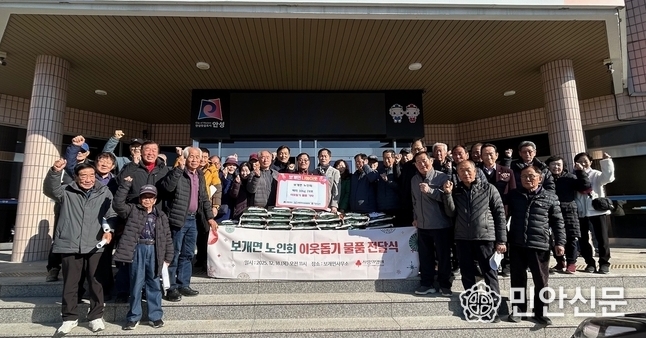 보개면 노인회(총회장 김동운)가 지난 18일 오전 11시 12월 월례 회의를 마친 후 행정복지센터에서 이웃돕기 물품 기탁식을 가졌다.