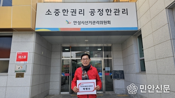 국민의힘 박명수 전 경기도의원이 3일 오는 6.3 지방선거 안성시장 예비후보로 등록하고 본격적인 선거전에 돌입했다고 3일 밝혔다.
