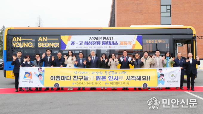 안성시는 가온고등학교에서 대중교통 불편지역 중·고등학생들의 통학 환경 개선을 위한 ‘학생 전용 통학 순환버스 안(安)녕(YOUNG)버스’ 개통식을 갖고 지난 30일 본격적인 운행에 들어갔다.