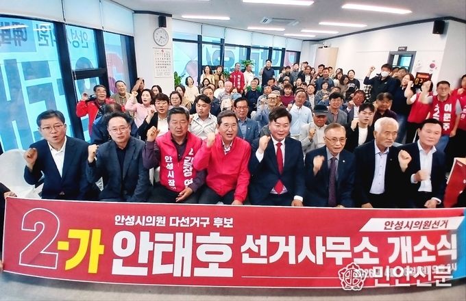 국민의힘 안태호 안성시의원 다선거구 후보가 26일 오후 아양동 소재 선거사무소에서 개소식을 성황리에 개최하며 오는 6·3 지방선거를 향한 본격적인 선거 행보에 나섰다.