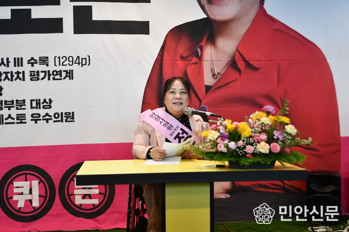 안성의 딸 정토근 예비후보는 “휠체어 바퀴는 멈추지 않고 더 빠르고 더 정직하게 굴러가 본 선거에 당당히 승리해 정당 정치가 외면한 안성의 문제점을 찾아내고, 보듬는 진짜 일꾼이 되겠다”고 다짐해 열렬한 환호와 박수를 받았다.